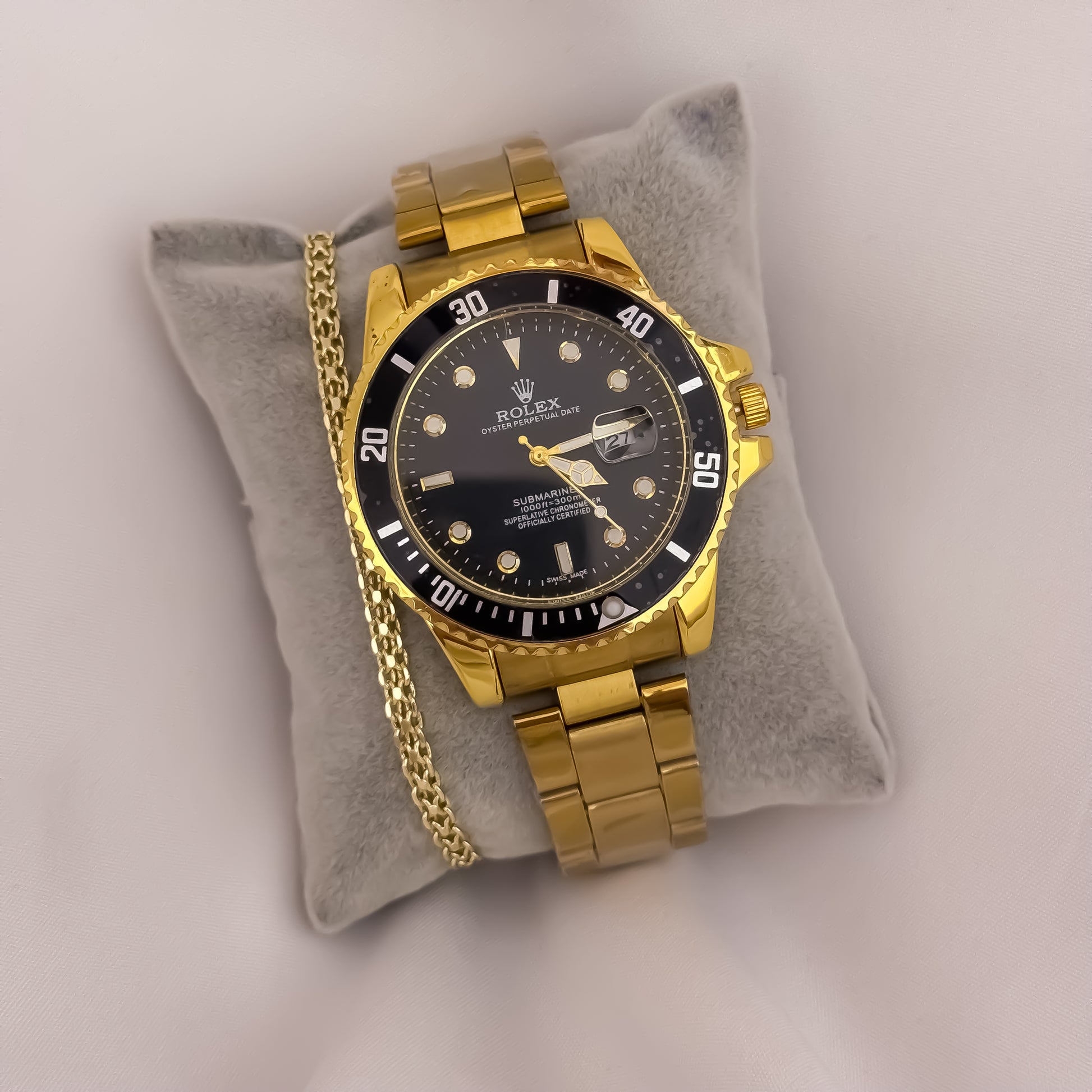 Reloj Amarillo Rolex de Alta Calidad 1.1 Laminado + Pulsera China de 20cm de 4mm en Oro Laminado 18k con Garantia de por vida