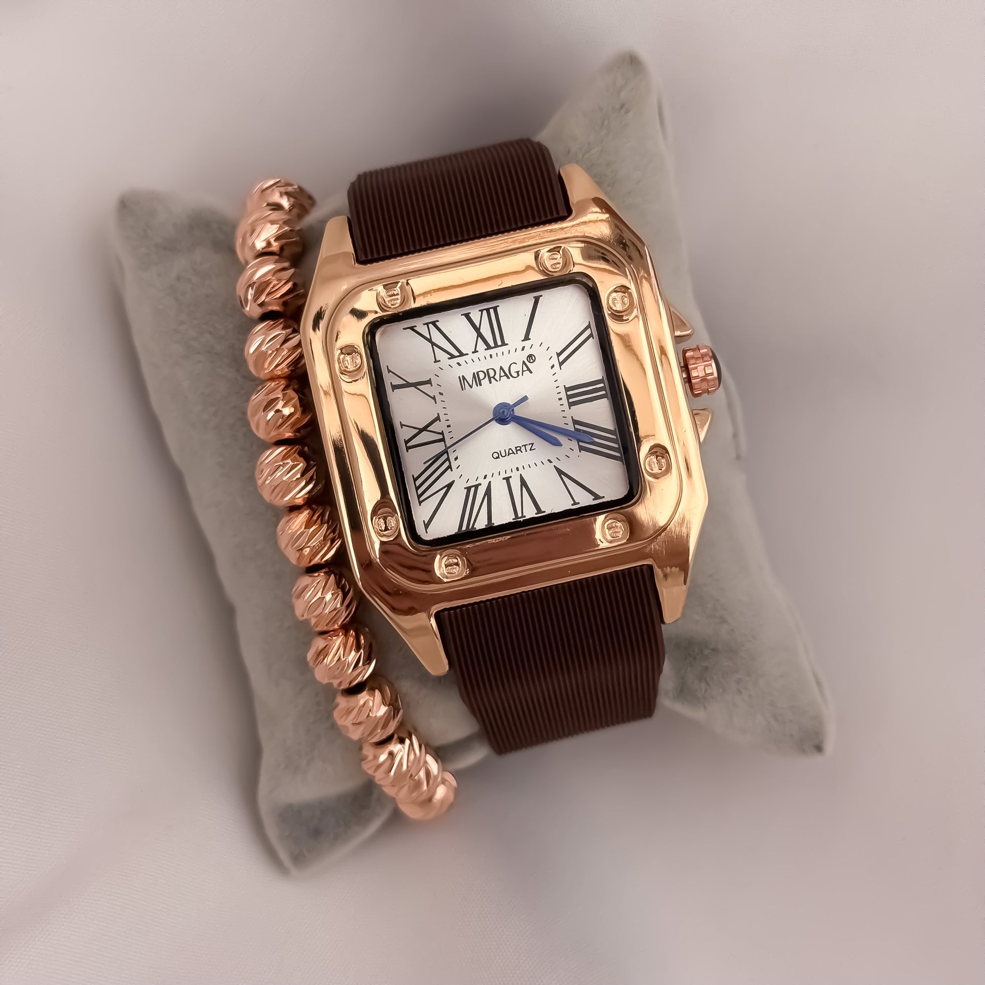 Reloj Catier en Oro Rosa Automatico Sumergible Correa de Goma + Pulsera Oro Rosa Balin Italiano de 8mm en Oro Laminado 18k con Garantia de por vida