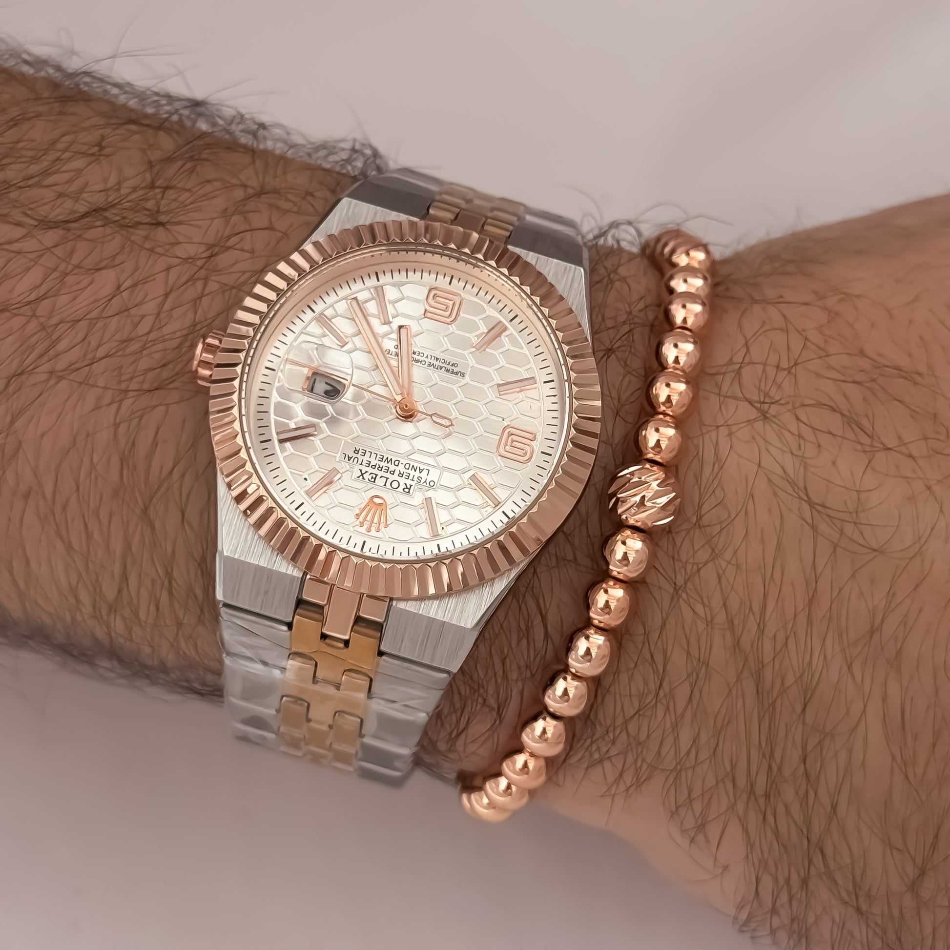 Reloj Rolex Bicoloro Oro Rosa Laminado 18k + Pulseras en Oro Rosa Laminado 18k con Garantia de por vida